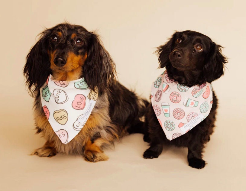 This adorable over-the-collar dog bandana slips onto your dogs' collar securely -preventing unwanted removal! These dog bandanas are part of the Valentine's Day Collection.