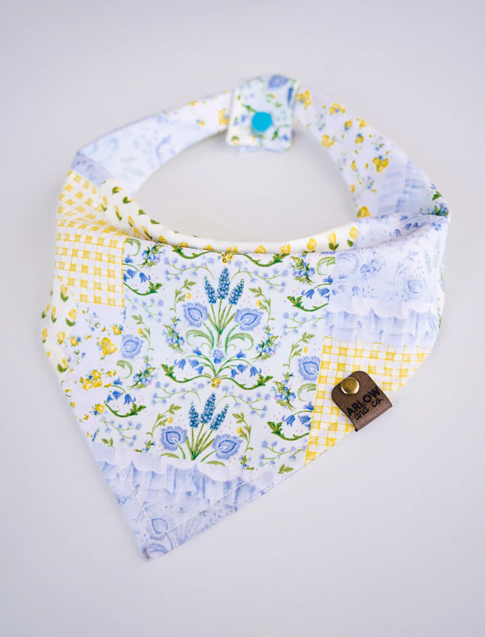 Arlow & Co bandanas are handmade in Kansas. They are made with a snap, making it easier to slide them on and off, but are still durable enough that they stay on during adventures. Because these are handmade, slight variations may occur. Make sure to accurately measure your pet's neck before purchasing to ensure the perfect fit!